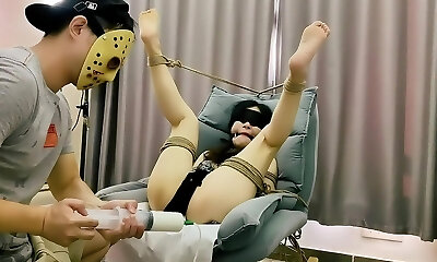 Depraved dominant stud lets submissive whore know what restrain bondage is
