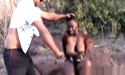 Outdoor BDSM and fellate with a busty African slut