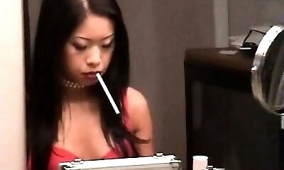 Sexy japanese smoking and fingering pussy on webcam