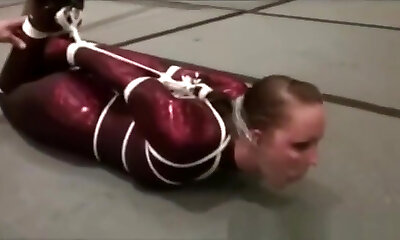 chrissy gagged - tied up babe in bondage choking in red