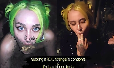 Gargling a real stranger's condoms eating trash and mess. My absolutely extreme night walk.