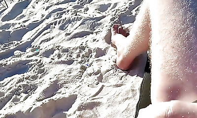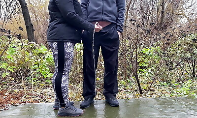 Sports mother-in-law after jogging in the park holds sonnie-in-law's man sausage
