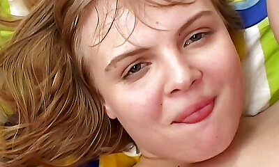 Insatiable light-haired girl with a big ass, Barbora is spreading her pink pussy, while alone at home