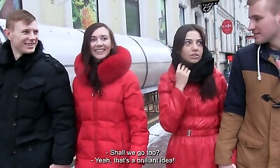 Swinger swap for a breast contest between these kinky couples.
