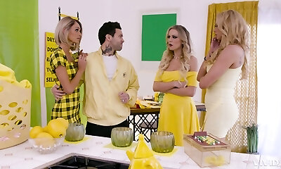 Bored sweetheart Violet Starr and blond nympho are ready to have fun (FFM)